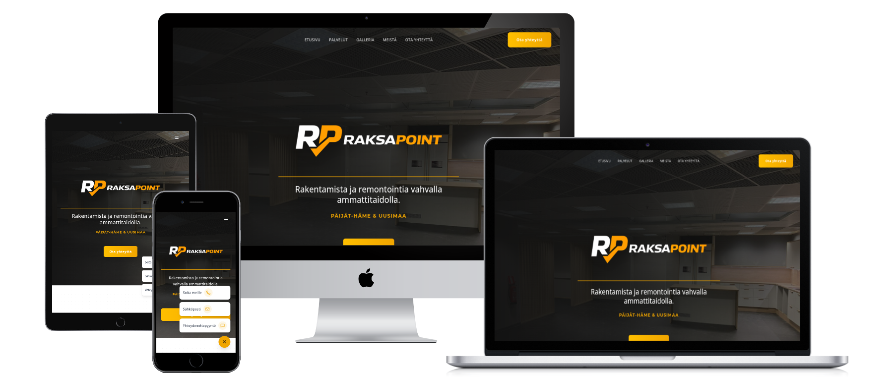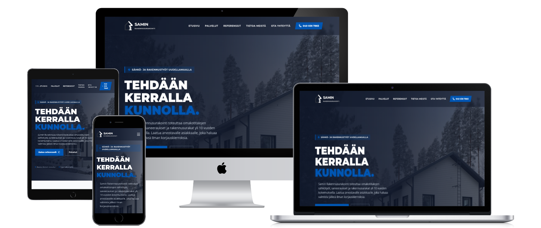 Rakennamme suomalaisille palveluyrityksille selkeät, uskottavat ja myyvät nettisivut ilman turhaa säätöä. Annat meille perustiedot, me hoidamme loput.